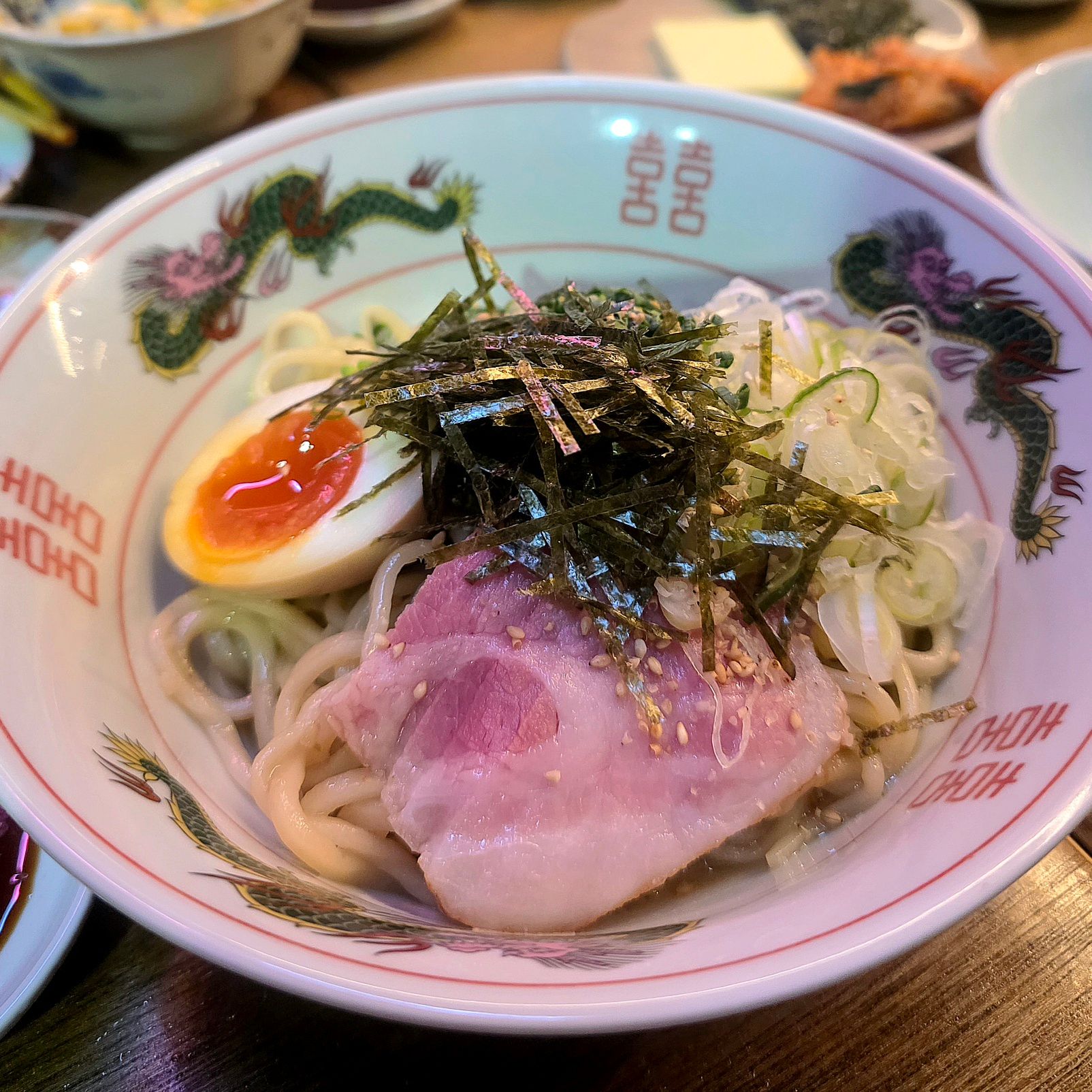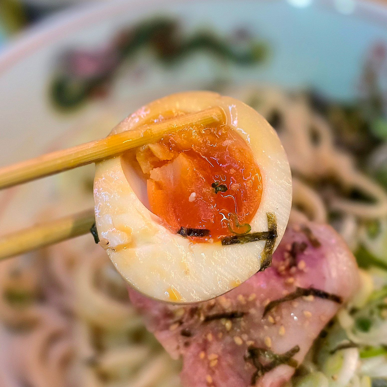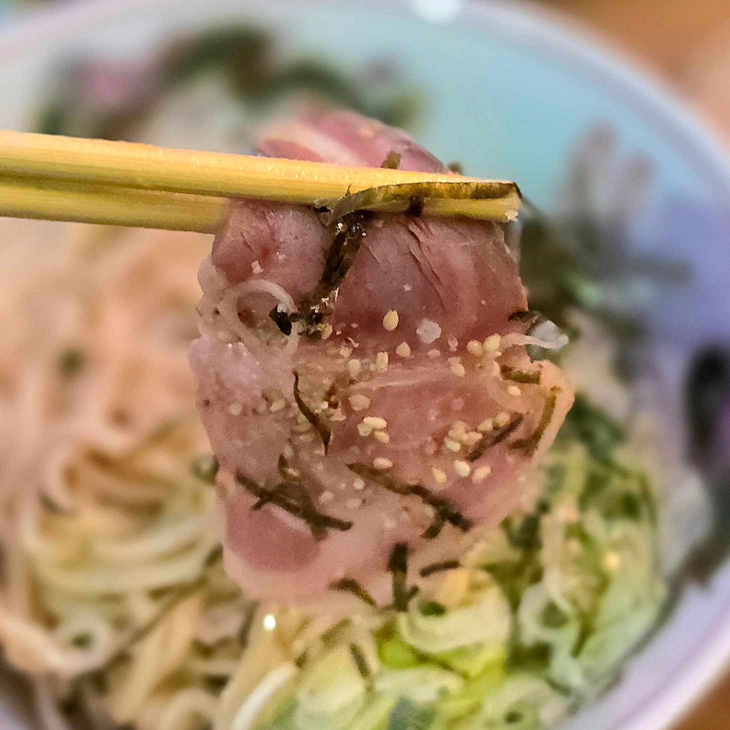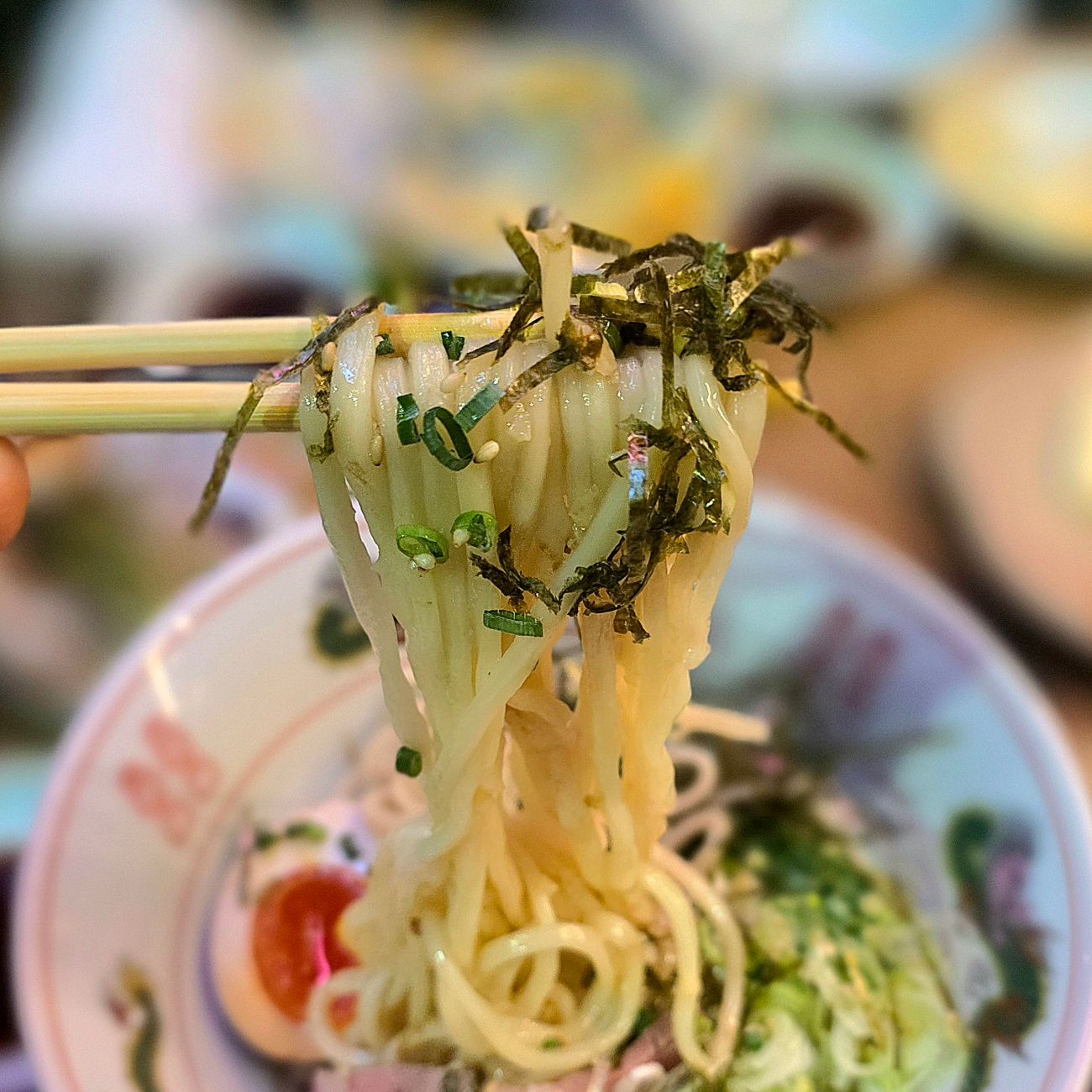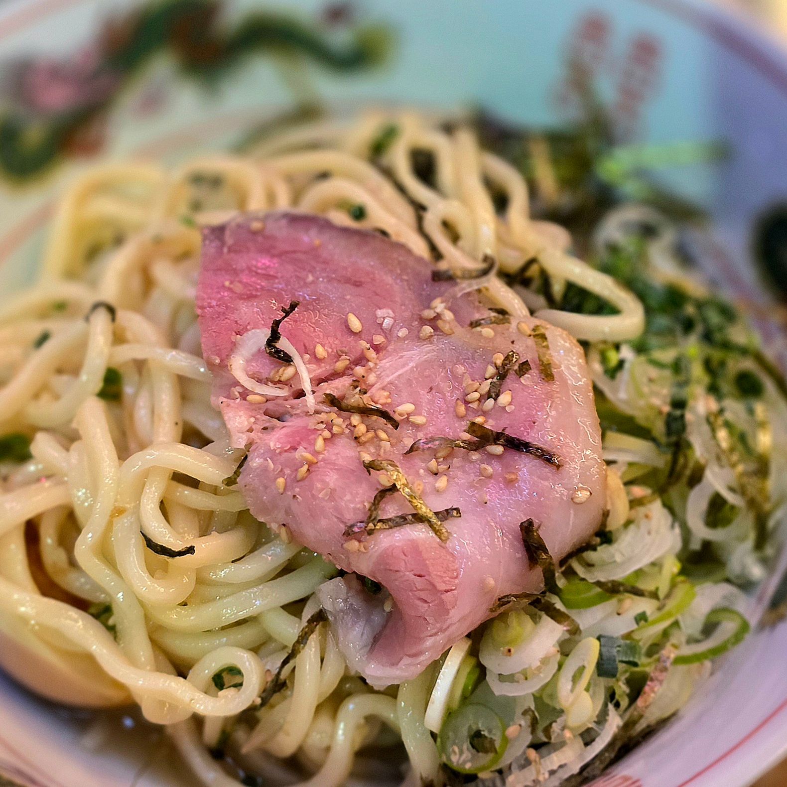 低温チャーシューがしっとり柔らかく、麺とよく絡みます。