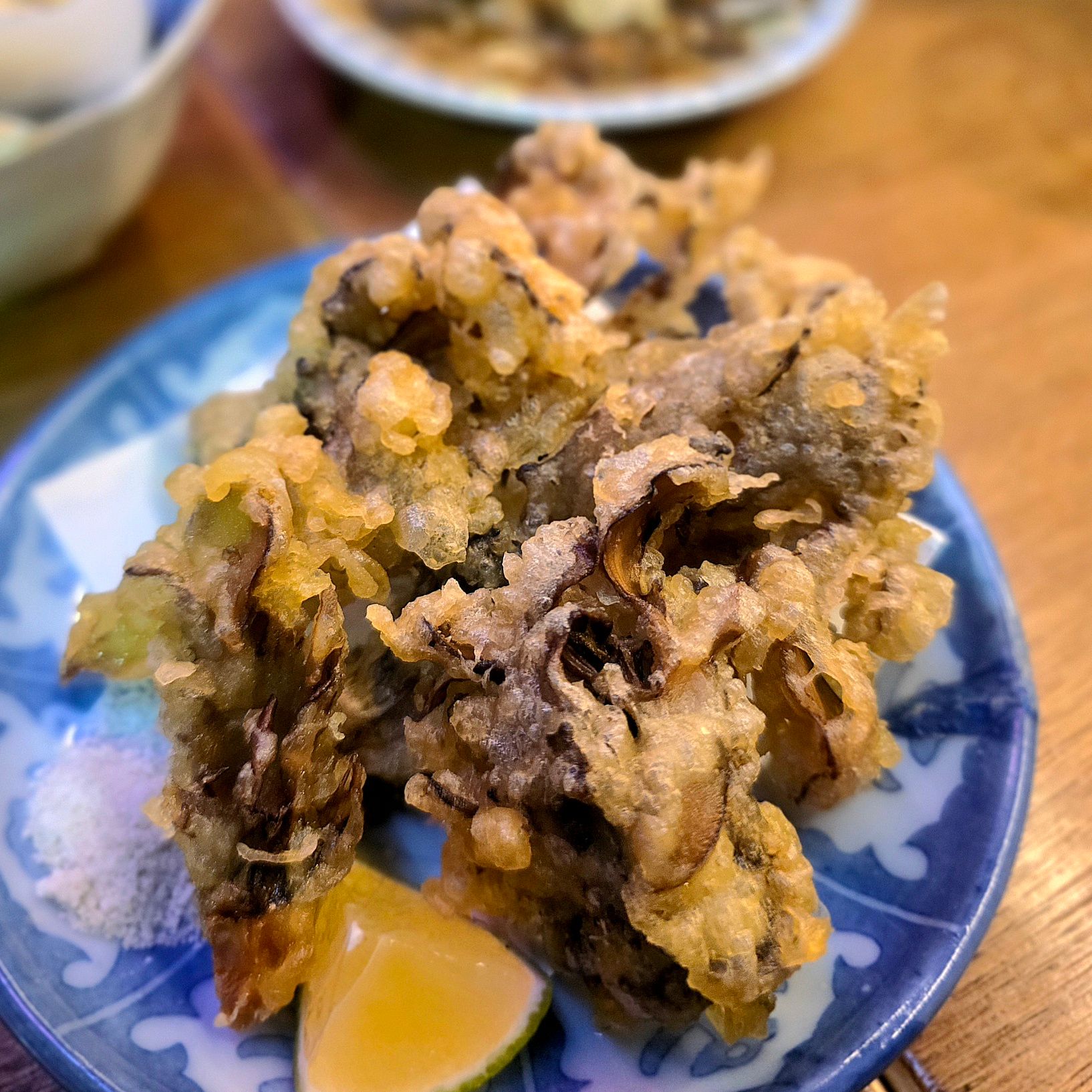 「マイタケ天(680円)」は、旬らしく香りが豊か。衣が軽く、サクッとした食感のあとに、マイタケ特有の香りがふわっと広がります。塩でいただくのがおすすめ。