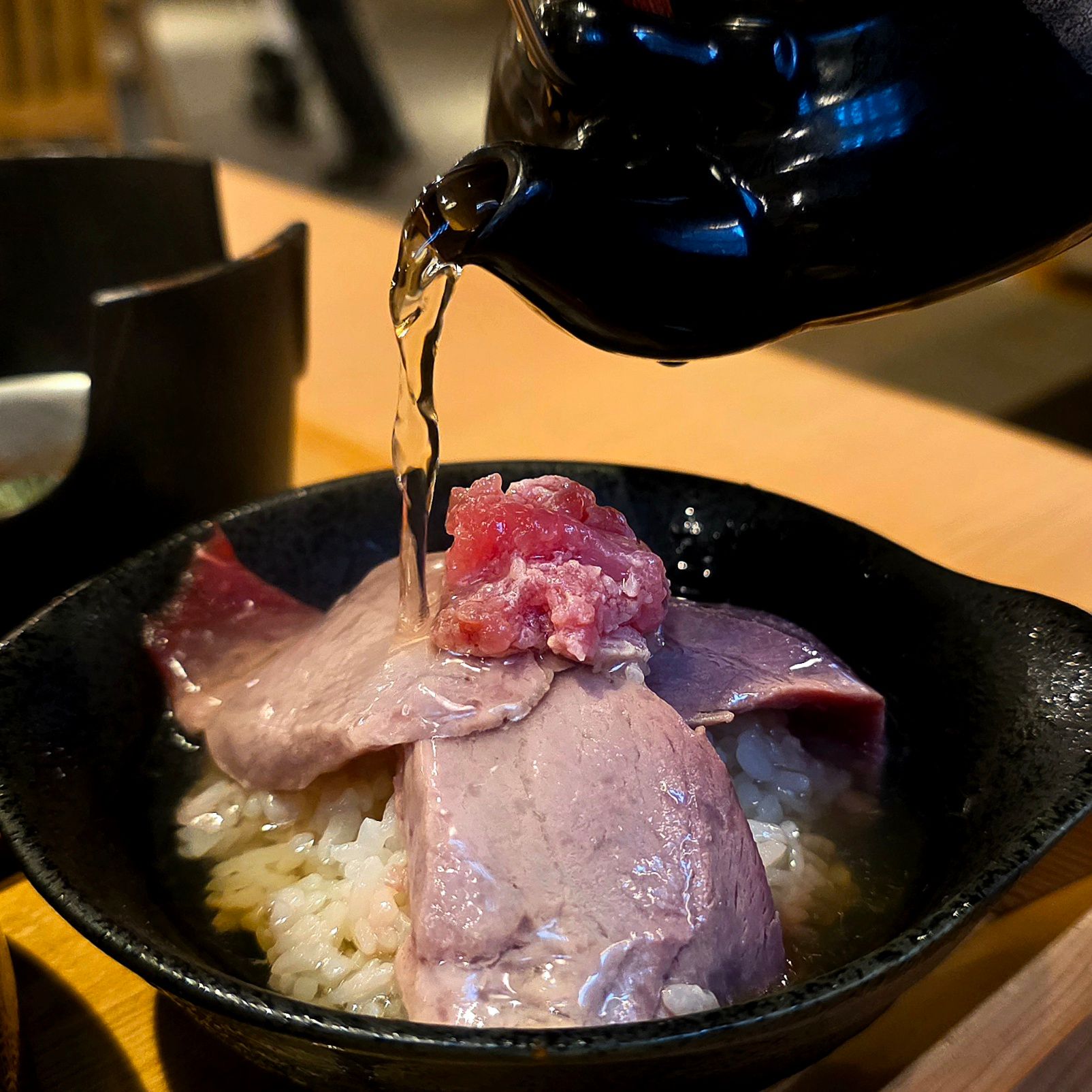 マグロの脂が出汁と混ざることで、旨味が一段階引き上がる感覚。重たくなりがちなマグロも、するっと食べられるのが不思議で、最後まで箸が止まりません。