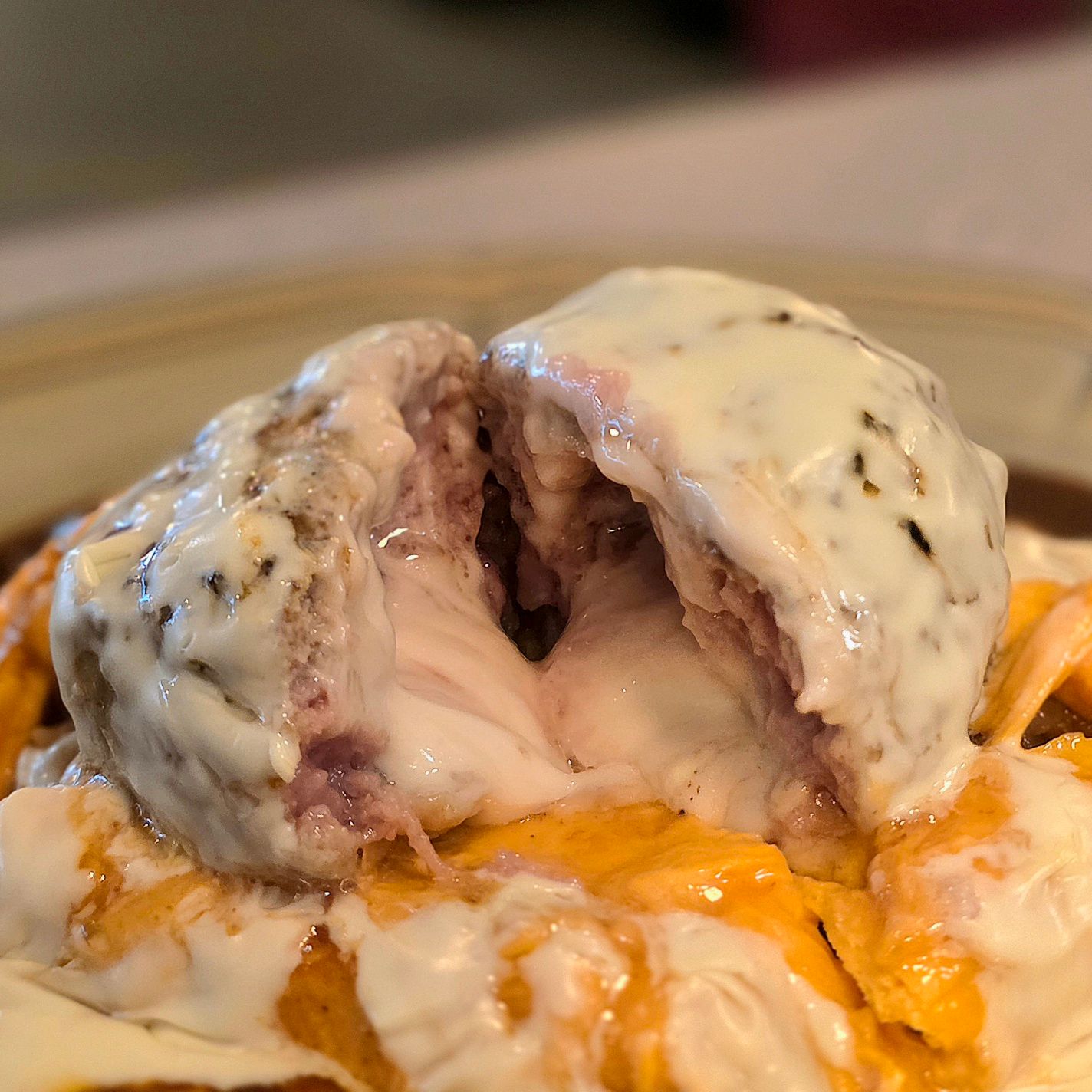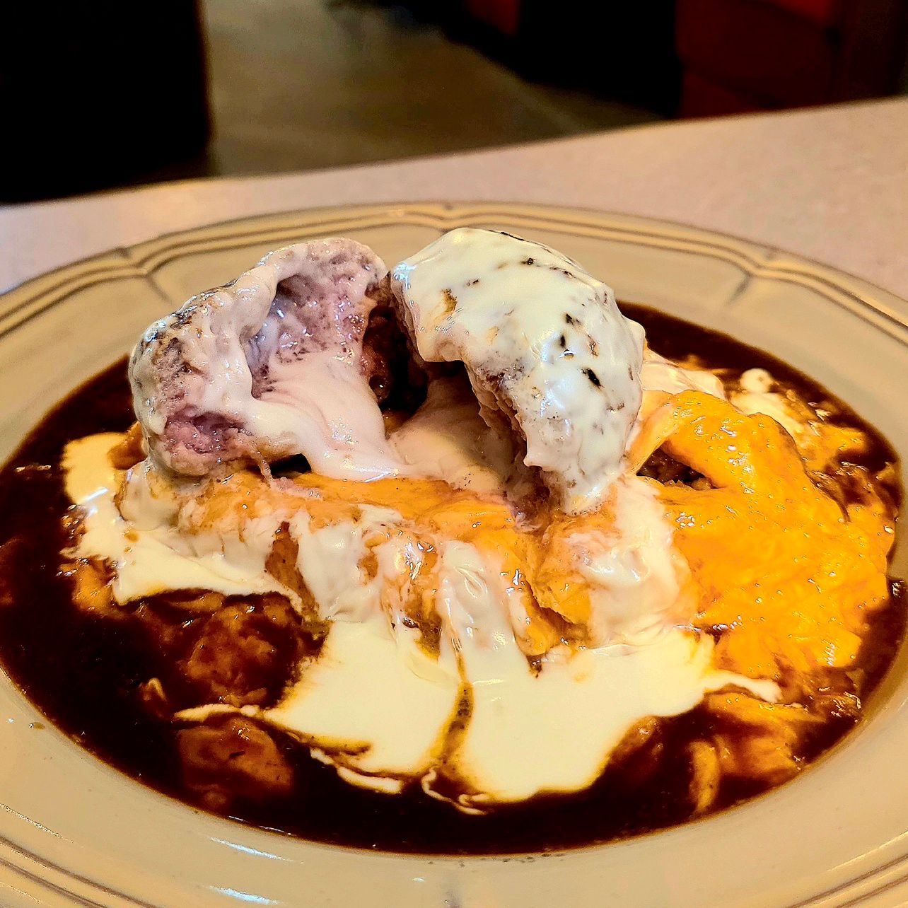 ハンバーグのジューシーさがアクセントになっていて、チーズ&デミグラスが全体をラグジュアリーに仕立てています。
