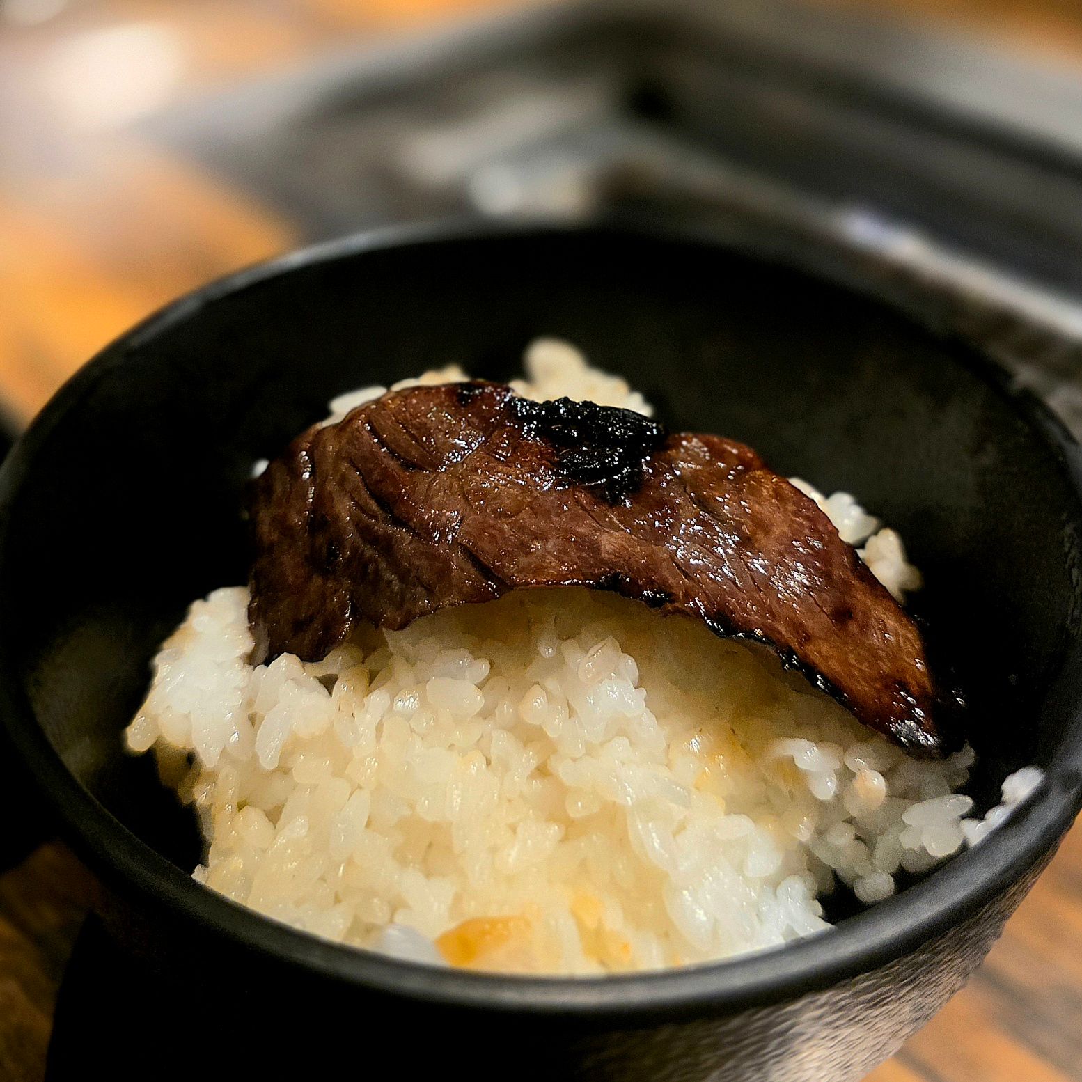 タレを少しまとわせ、ご飯に乗せ、一気に掻き込みます。