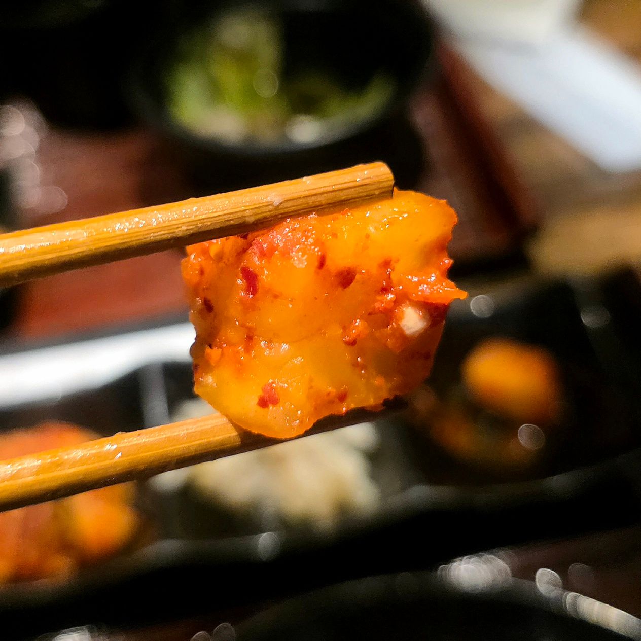 カクテキはザクザクで、噛むたびに甘さと酸味が小気味よく跳ねます。